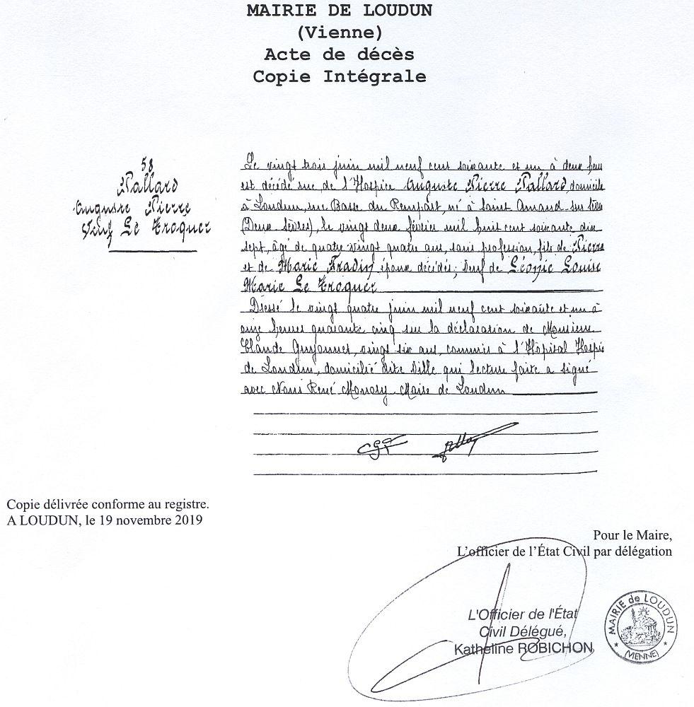Libéré du service militaire le 10 Novembre 1926.