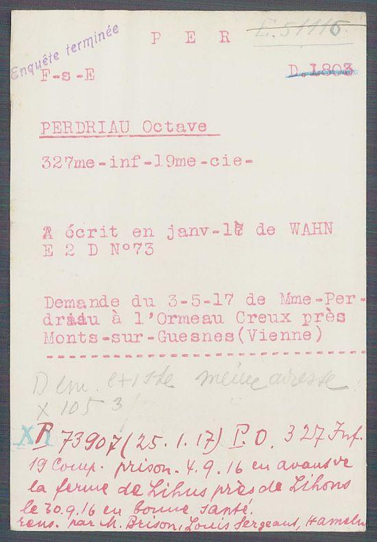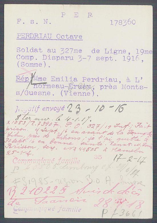 Passé au 327e Régiment d'Infanterie le 17 mars 1916.