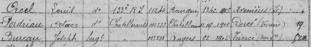 Passé dans l'armée territoriale le 1er octobre 1915.