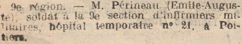 Dirigé sur la ème Sectin d'Infirmiers Militaires (Hôpital Poitiers).