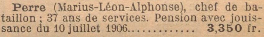 10 Juillet 1906 - 18ème Région - Retraité - Chef de Bataillon.