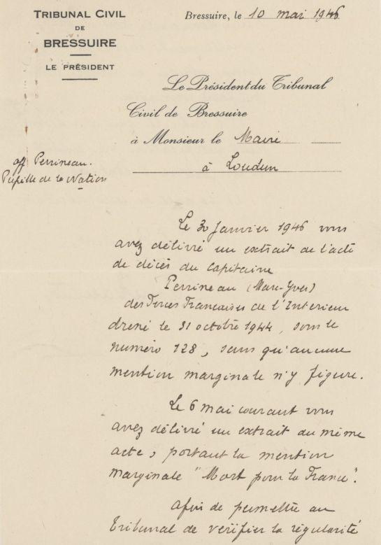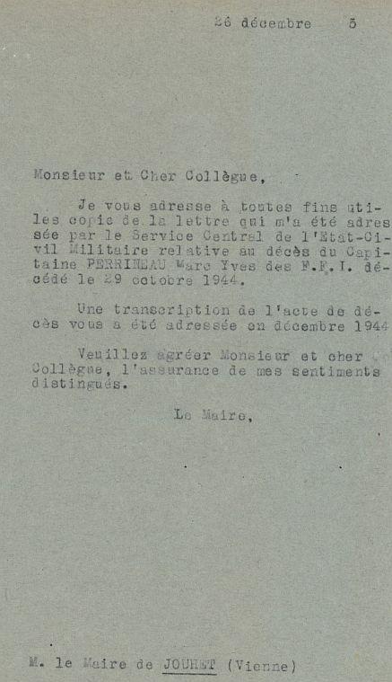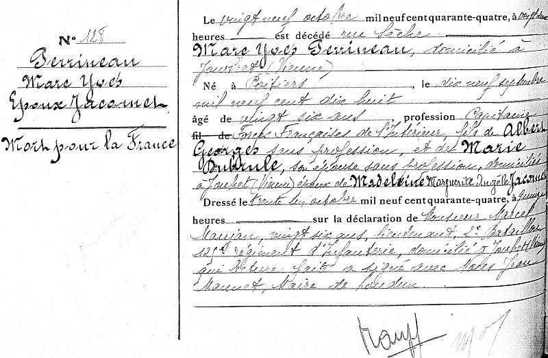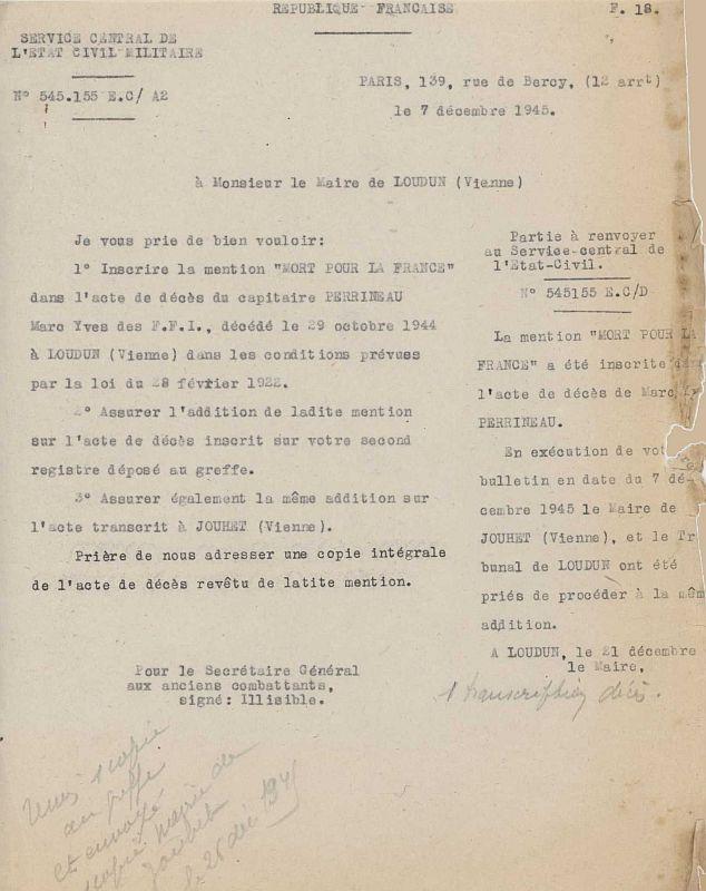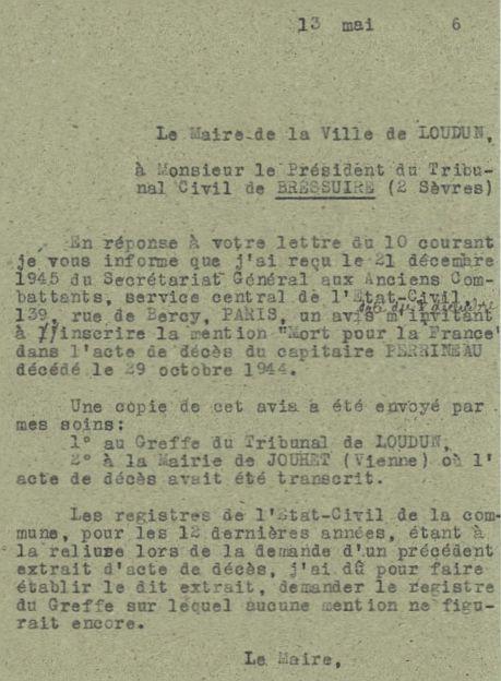 Décédé le 29-10-44 à Loudun (avis de décès de la Commune de Loudun).