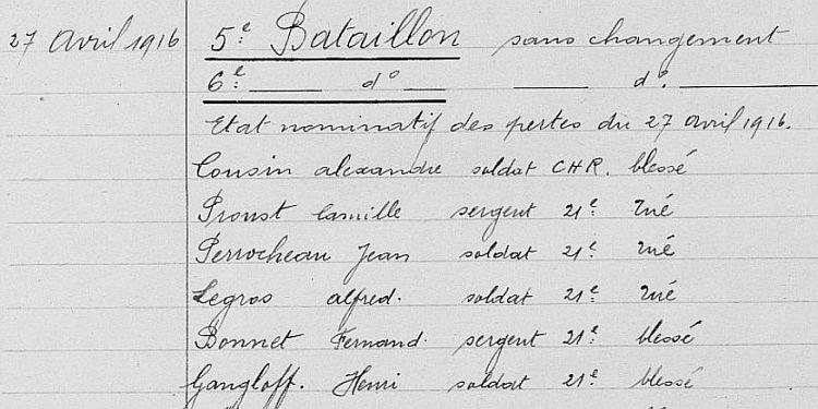 Tué à l'ennemi au Bois le Prêtre le 27 avril 1916 - Avis Ministériel du 6 mai 1916.