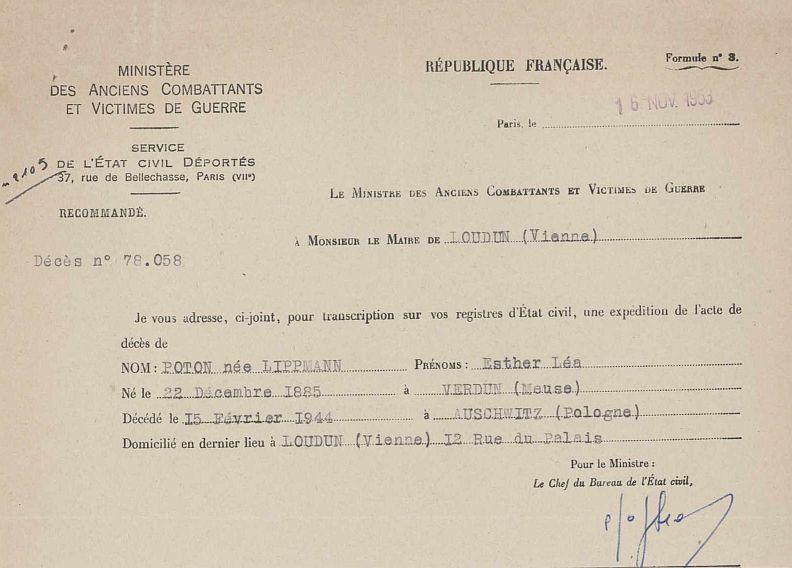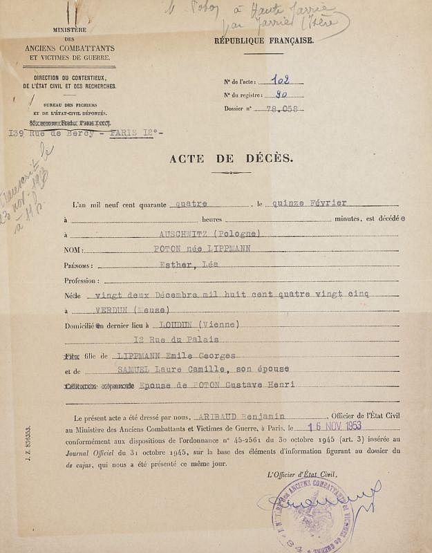 Verdun 22 décembre 1885 - Auschwitz 15 février 1944