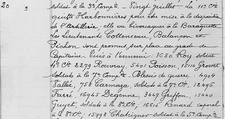 Arrivé au corps le 6 Août 1914.