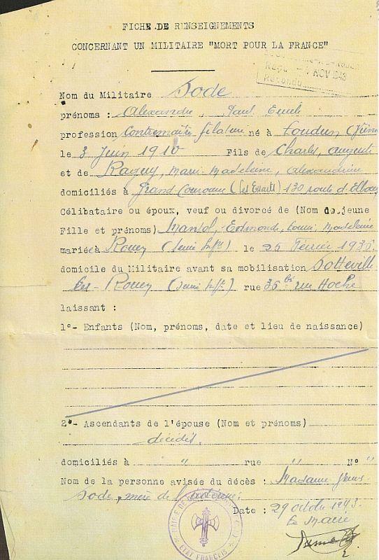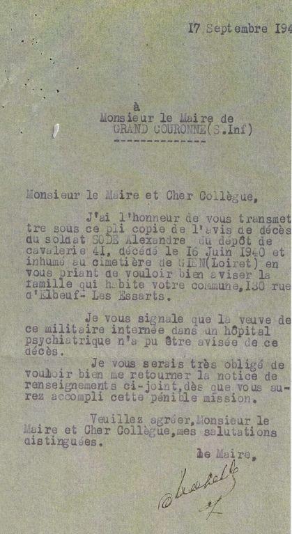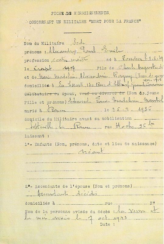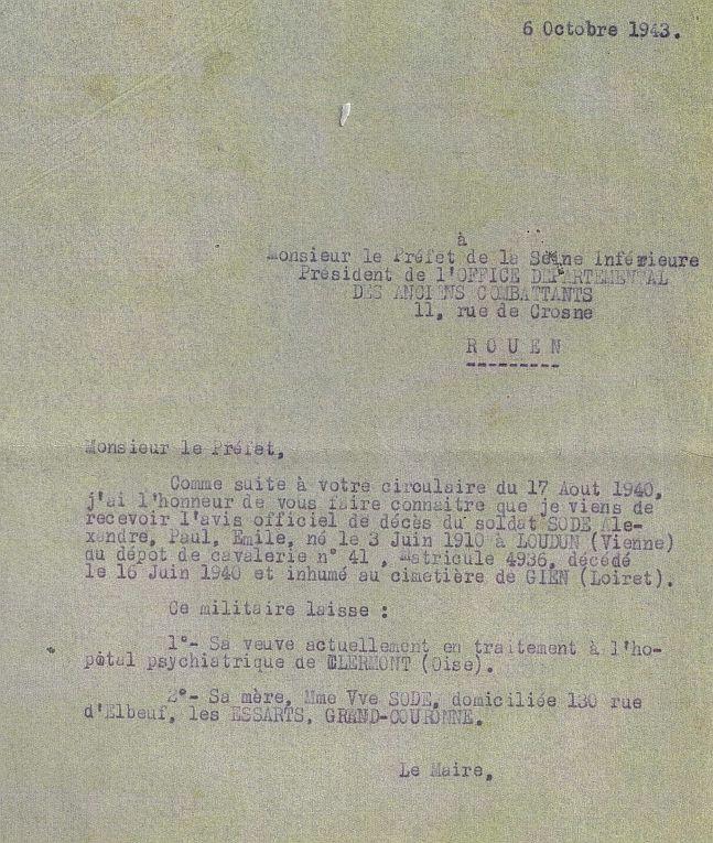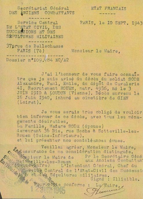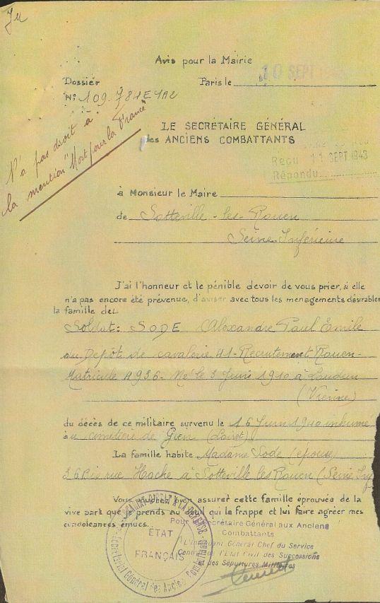 Il figure sur le Monument aux Morts de Sotteville-les-Rouen