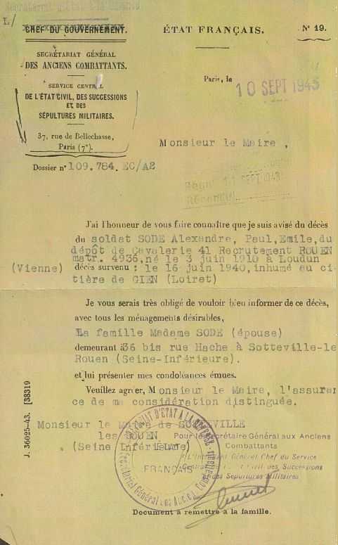 Loudun 3 Juin 1910 - Gien 16 juin 1940