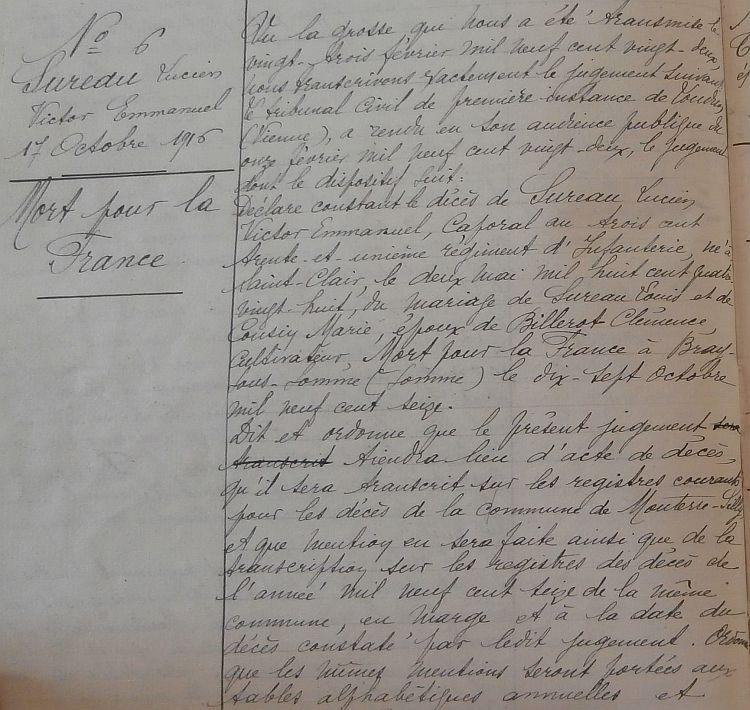Inhumé le 17 Octobre 1916 au cimetière de Bray sur Somme (avis Mel du 28 Octobre 1916 HK n° 175).