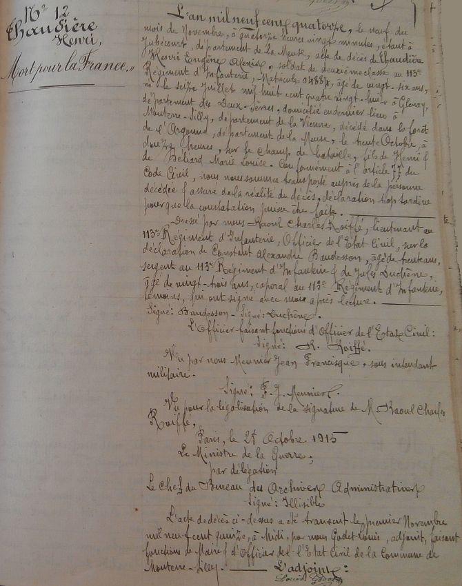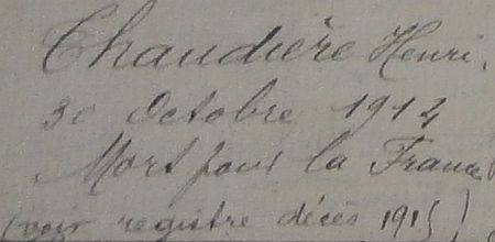 Tué à l'ennemi le 31 Octobre 1914 à la Haute Chevauchée.