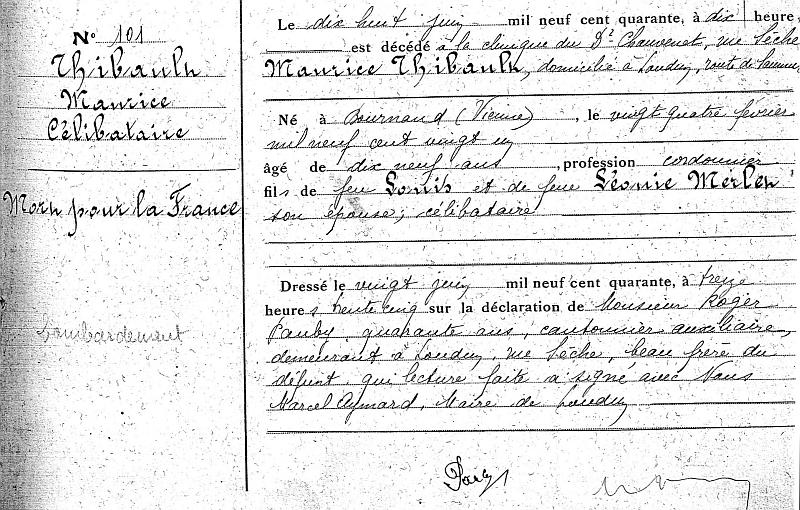 Bournand 24 Février 1921 - Loudun 18 Juin 1940