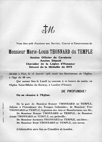 Né à Loudun le 4 novembre 1848, fut officier de cavalerie. Il donna sa démission pour se livrer à l’agriculture dans la commune de Beuxes dont il était maire [1881-1900]. Il y établit d’importants haras de chevaux de pur sang, et obtint de nombreuses récompenses. Président de la Société agricole de l’arrondissement de Loudun, et d’un important syndicat d’assainissement qui a rendu les plus grands services à dix communes des départements de la Vienne et des Deux-Sèvres, conseiller général pour ce canton, il se présenta comme candidat républicain protectionniste libéral aux élections législatives du 20 août 1893, et fut élu le 3 septembre contre M. de Soubeyrand, sortant.