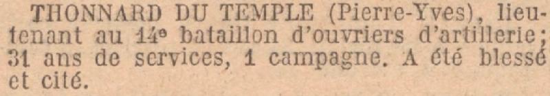 PromuLieutenant par Décret du 8 février 1915 (rang du 2 Septembre 1914).