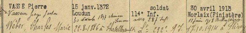 Cassé de son grade et remis soldat de 2e classe le 2 Juin 1918 pour inaptitude au commandement.