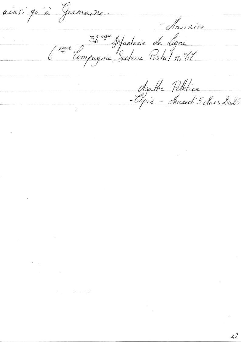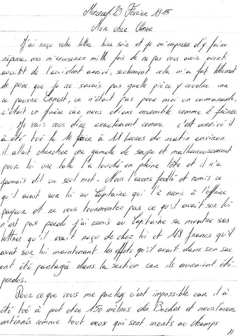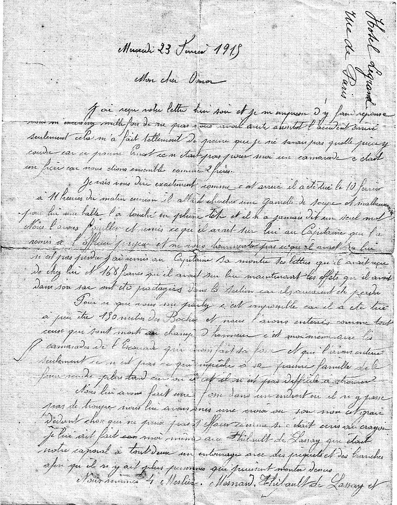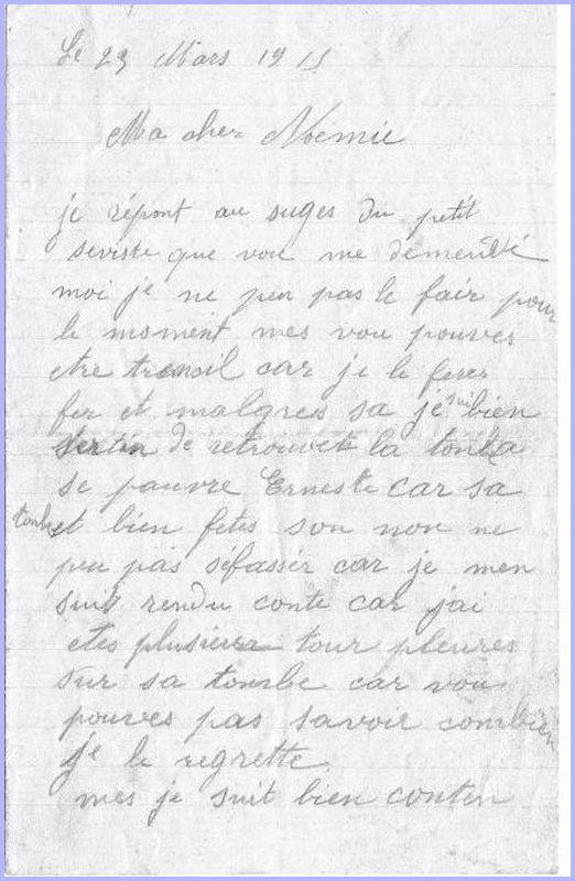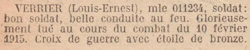 Tombé au champ d'honneur au combat de Hooge (Belgique) le 10 février 1915.
