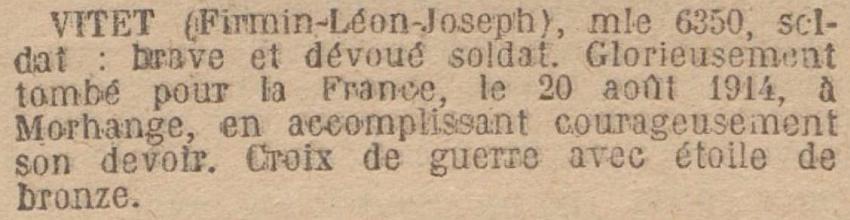 Déclaré décédé le 20 août par Jugement déclaratif de décès rendu par le Tribunal de Loudun en date du 8 mai 1920.