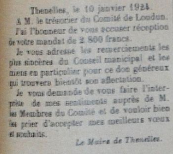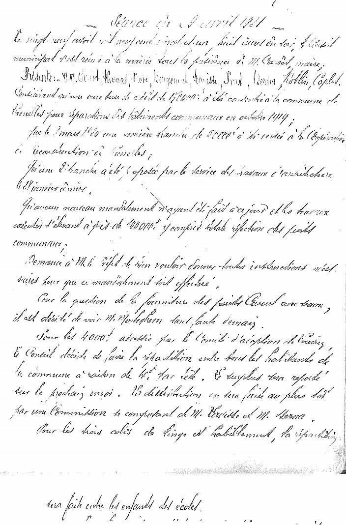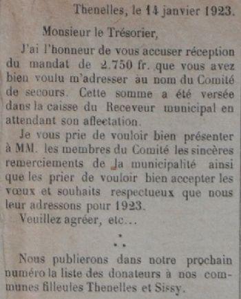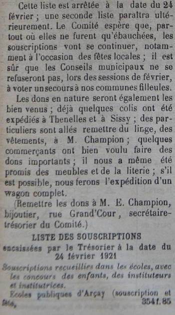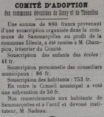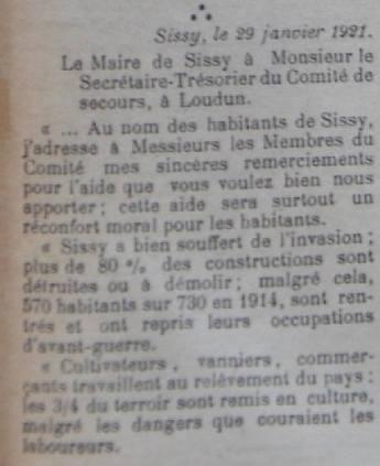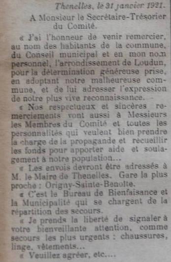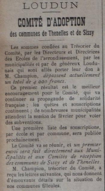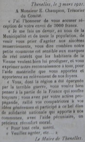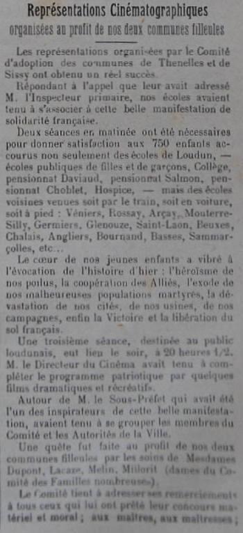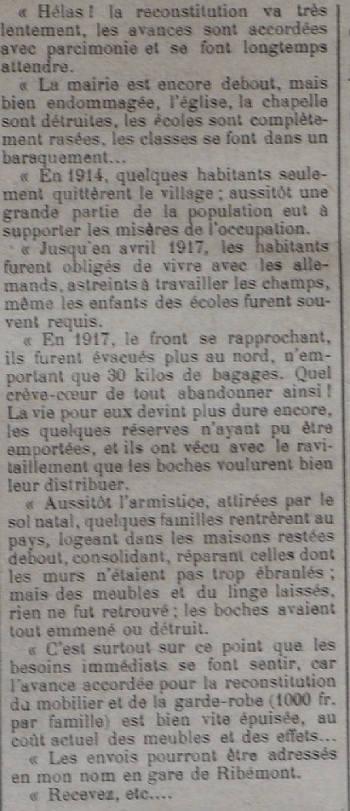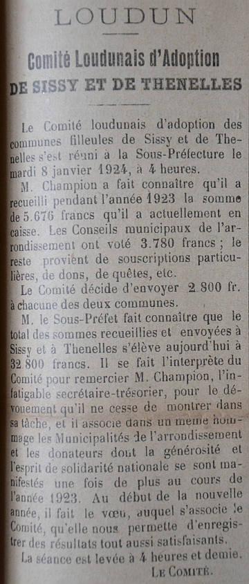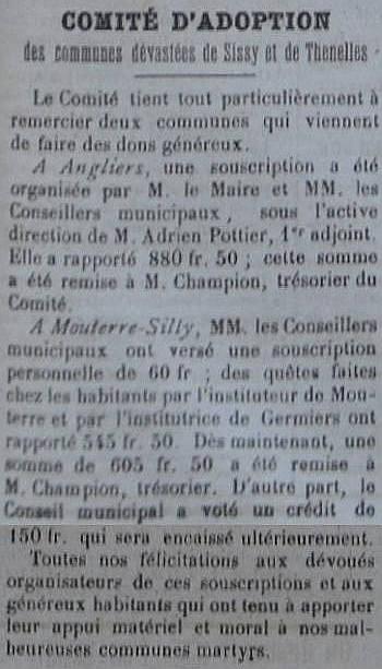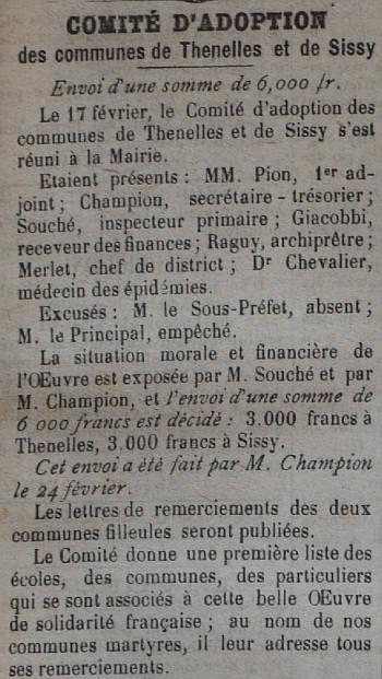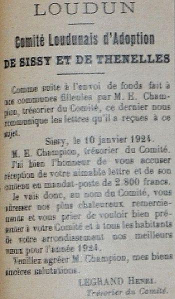 Le programme d'adoption des communes dévastées par la guerre (donc pas seulement dans l'Aisne) a été lancé par l'Union des Grandes Associations Françaises pour l'Essor National en juin 1920 et se met en place en 1921.